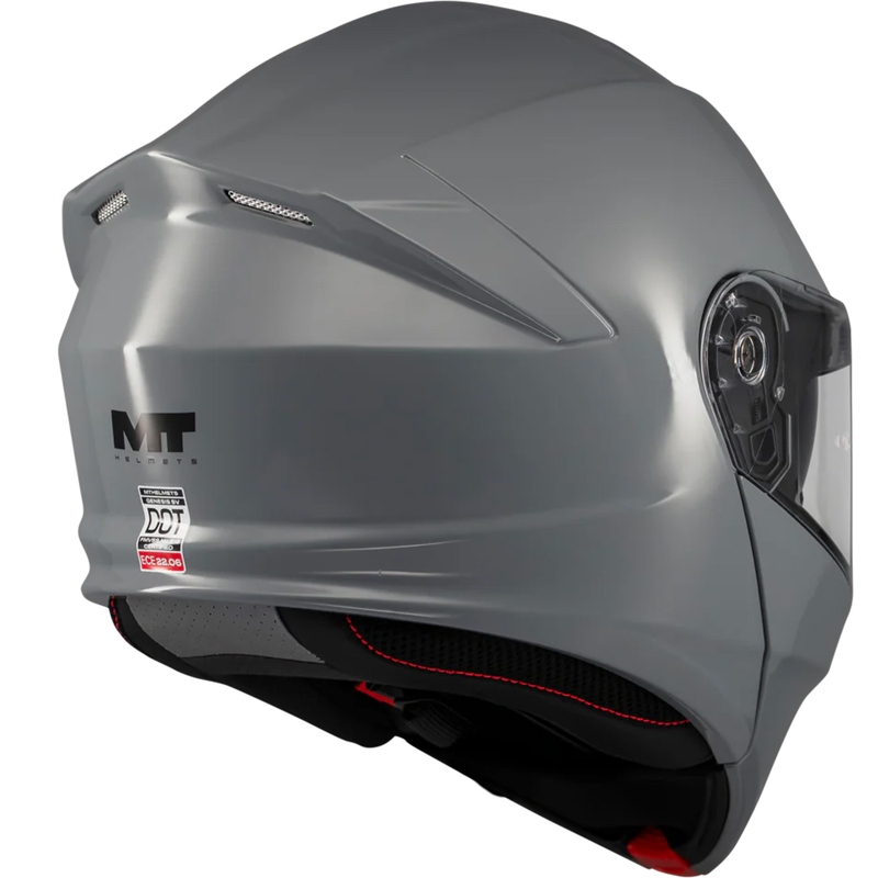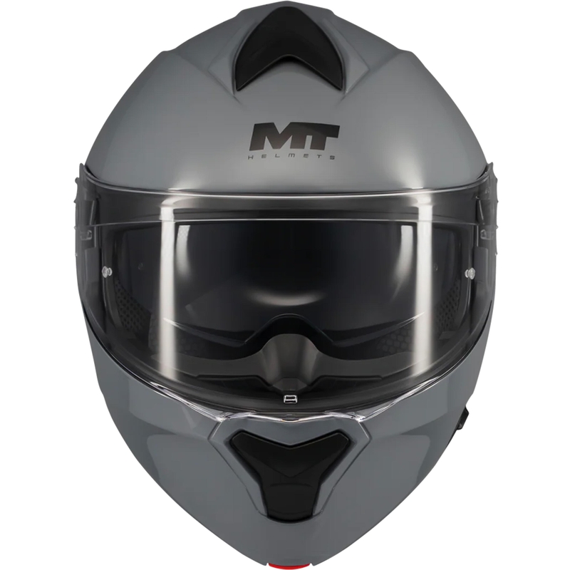 Výklopná prilba od MT Helmets rozširuje ponuku výklopných modelov a ponúka cenovo dostupný vstup do tejto kategórie. Moto prilba kombinuje vysokú bezpečnosť, praktické funkcie a výborný pomer cena–výkon, takže zaujme široké spektrum jazdcov. Je vyrobená z odolného materiálu HIRP a ponúka dve veľkosti škrupiny. EPS s viacerými hustotami zabezpečuje lepšiu absorpciu nárazov. Interiér je úplne vyberateľný pre jednoduchú údržbu. Plexi má odolnú konštrukciu, optimalizovaný mechanizmus otvárania a je kompatibilné s vložkou Pinlock DKS002. Integrovaná slnečná clona poskytuje takmer stopercentnú ochranu vďaka napojeniu na nosný deflektor. Ventilačný systém Air Flow Channel zabezpečuje lepšie prúdenie vzduchu. Prilba na motocykel je pripravená na komunikátor. Zapínanie je mikrometrické so systémom dvojitého zubu, ktorý bráni nechcenému otvoreniu. Súčasťou je nosný deflektor. Hmotnosť moto prilby je približne 1675 g a spĺňa homologácie ECE 22.06, DOT a P/J.