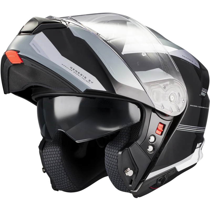 Výklopná helma na motorku MT Genesis SV Raccoon B12 černo-šedá